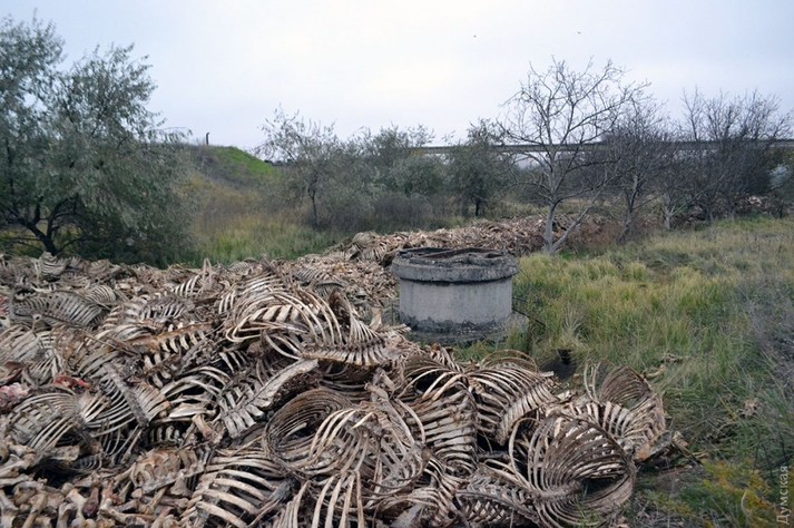 Величезний скотомогильник організували невідомі на північній околиці Одеси, в районі колишнього заводу «Центроліт», повідомляє «Думская».