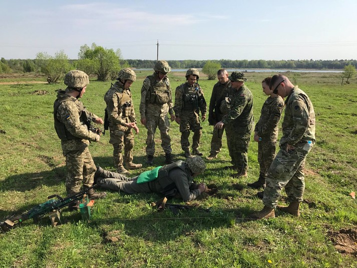 «І це вчать не саперів, це вчать лінійні роти десантників. Як пройти ліс, як обійти пагорб, як витягнути пораненого, "к.о.л.е.с.о.". Встав о 6 ранку, помився, поснідав і в поле - працювати. Кожен крок з поясненням наших інструкторів, кожен крок під наглядом НАТОвських інструкторів», - пише помічник міністра оборони у Facebook.