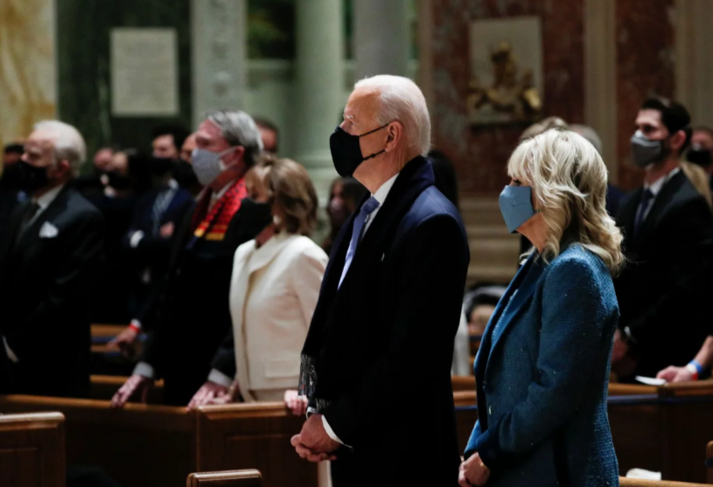 Церемонія інавгурації Джо Байдена почалася з урочистої меси в соборі Святого Апостола Матвія у Вашингтоні. На ній були присутні новий президент США з дружиною Джилл Байден, а також новий віце-президент США Камала Харріс із чоловіком.