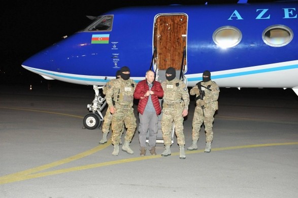 Блогер Олександр Лапшин, екстрадований з Мінська за запитом Баку, доставлений в аеропорт Гейдара Алієва в супроводі співробітників Генпрокуратури.
