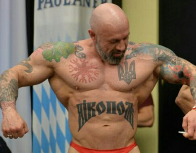 У мережі величезний спортсмен, на всі груди якого, вибитий український тризуб, викликав справжній фурор як на сцені, так і в інтернеті.