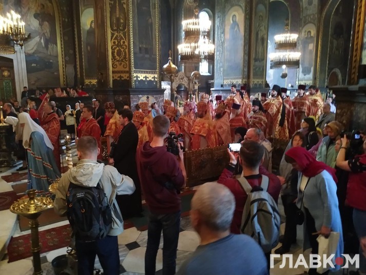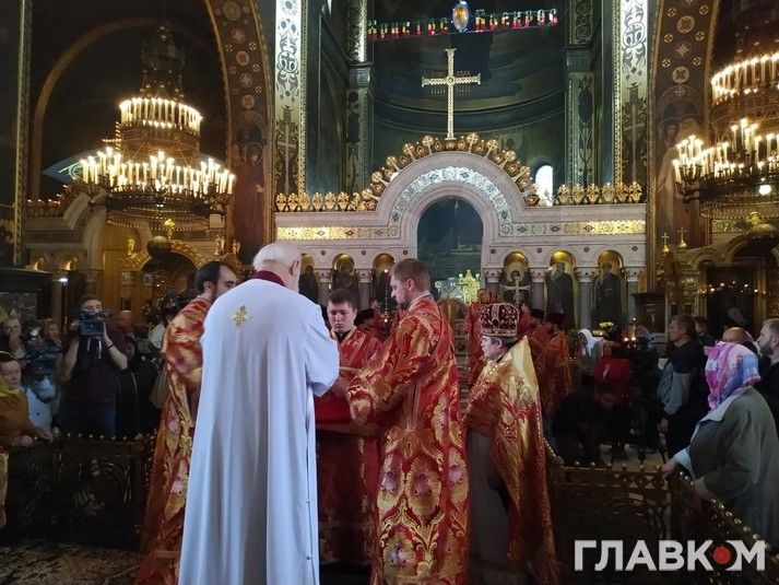 На Божественну літургію, яка проходить у вівторок, 14 травня, у Володимирському соборі Києва прибули три представники Української церкви з єпархій, які знаходяться на території РФ, - єпископ Валуйський Петро, митрополит Іоасаф Білгородський, митрополит Адріан (Старина), а також архієпископ Сімферопольський і Кримський Климент.