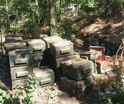 За оперативною інформацію, схрон із 1875 кілограмами тротилу облаштували бойовики терористичної організації «ДНР» для проведення диверсій на цивільних та військових об’єктах регіону напередодні святкування 25-ї річниці Незалежності України.
