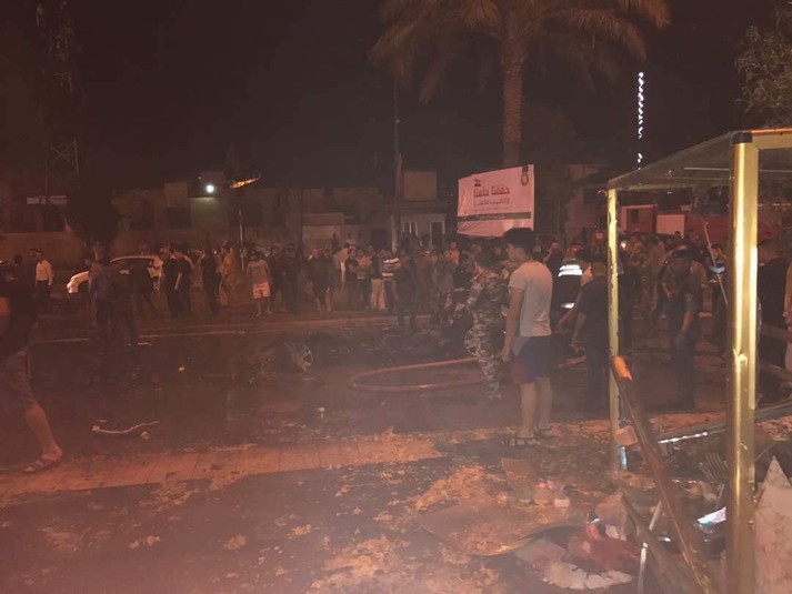 First moments after a #ISIS car bomb targeted civilians outside a ice cream shop in Karrada central #Baghdad #Iraq. pic.twitter.com/QJbeSY2jMP