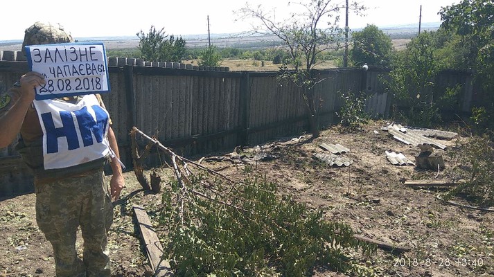 Також 28 серпня 2018 року бойовики обстріляли населений пункт Залізне. На місці події представниками української сторони СЦКК було зафіксовано два влучання мін калібру 82 мм, внаслідок яких було пошкоджено господарські споруди на вулицях Рєпіна та Чапаєва.