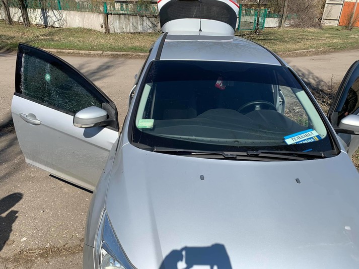 Окупанти скинули снаряд з безпілотника, який впав в метрі від автомобіля телеканалу. Снаряд розлетівся на кілька дрібних осколків. Осколок пробив наскрізь бокове скло автомобіля. Кілька інших осколків влучили в кузов.
