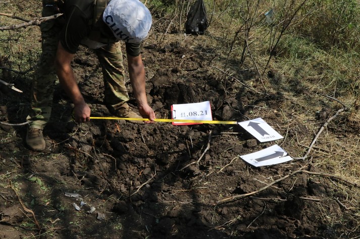 Прибулі за викликом українських військовослужбовців представники СЦКК зафіксували злочин, провели виміри воронок, що залишилися в полі після обстрілу.