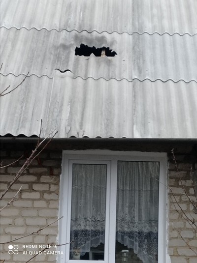 В одному будинку, за її словами, розбита шиферна покрівля, а в другому, по сусідству, де живе жінка з інвалідністю, пошкоджено пластикове вікно.