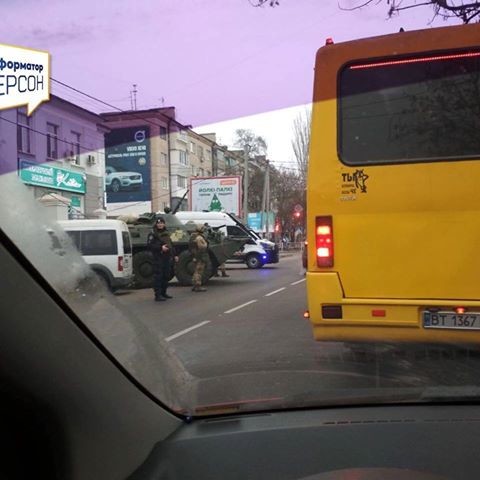 У соціальних мережах користувачі активно поширюють фото з великою кількістю поліції та БТР-ами на вулицях Херсона.