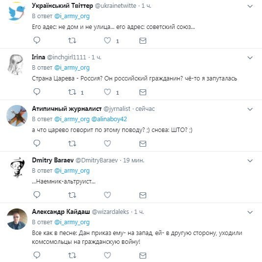 «Я знаю, як хлопці потрапили в Сирію. Я знаю, з яким невеселим настроєм мої знайомі з Донбасу, після укладення Мінських угод, летіли в Сирію. Повірте мені, летіли вони туди не за «довгим рублем». Вони, можливо, не розбираються в великій політиці, але вони батьківщину поїхали захищати туди, де, їм сказали, для країни потрібніше», - написав Царьов.