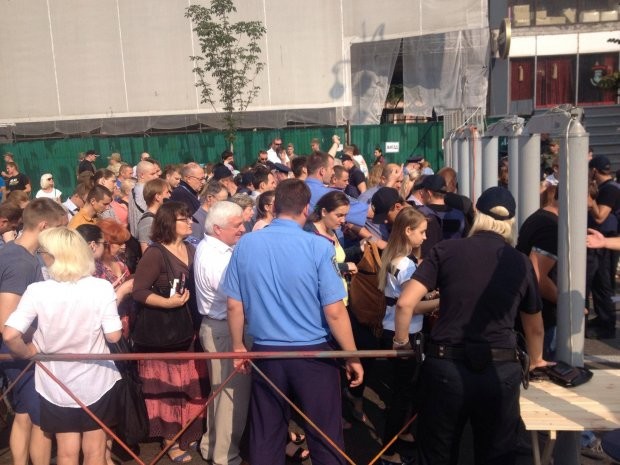 Люди мусять чекати в довжелезних чергах, щоб пройти через рамки та кордони правоохоронців.