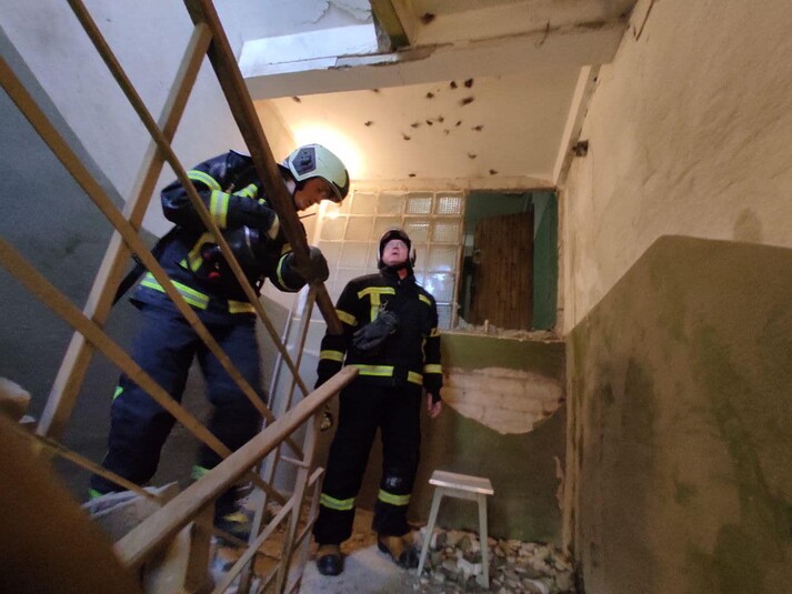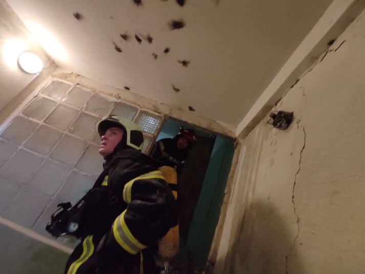 На місце події негайно прибули вогнеборці найближчих пожежно-рятувальних підрозділів. По прибуттю було встановлено, що внаслідок потрапляння уламків снаряду у 12-поверховий житловий будинокстався обвал будинку на 12 та технічному поверсі, також було частково пошкоджено сусідній 9-поверховий будинок.
