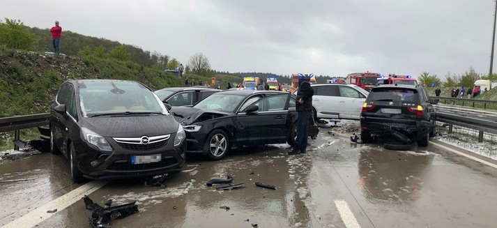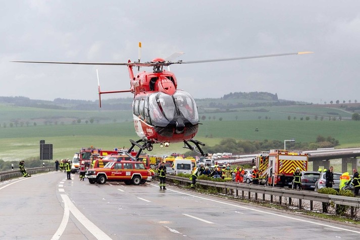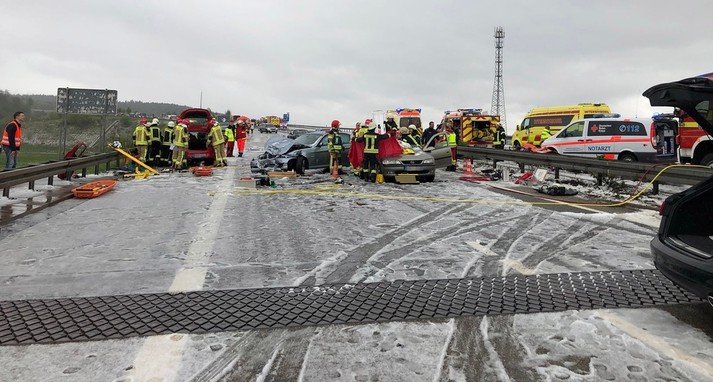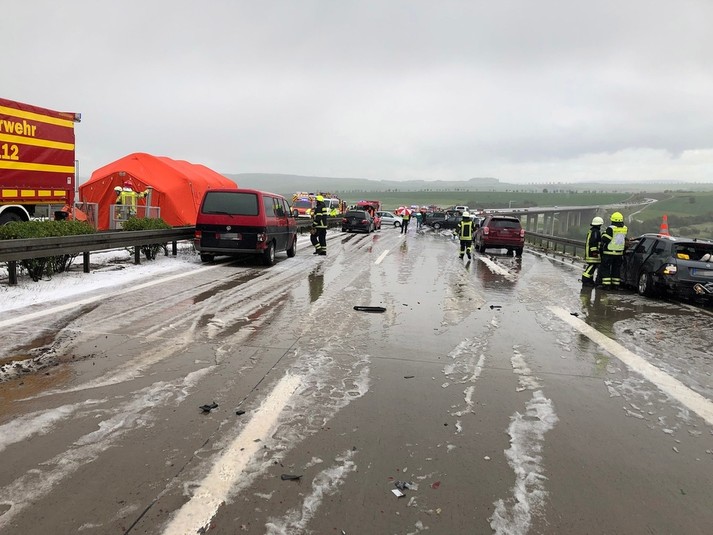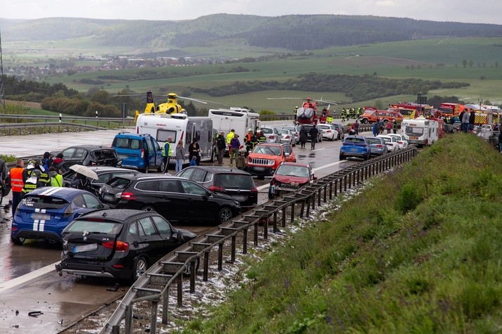 У південній Тюрінгії, Німеччина, на автобані A71 сталася аварія за участю великої кількості автомобілів.