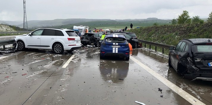 Місце аварії тягнеться на кілька сотень метрів. Автомобілі в'їхали один в одного, деякі втратили контроль і в'їхали в огорожу. Були також аварії на протилежній смузі, але незначні.