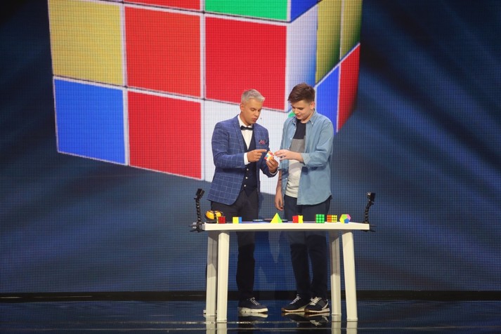 14-річний спідкубер Михайло Лагойда теж здивує телеведучих. Михайло швидше за всіх в Україні збирає кубик Рубіка з закритими очима і мріє побити світовий рекорд: зробити це за 2,4 секунди! А ще цей хлопець може дуже швидко зібрати кубик Рубика ногами.