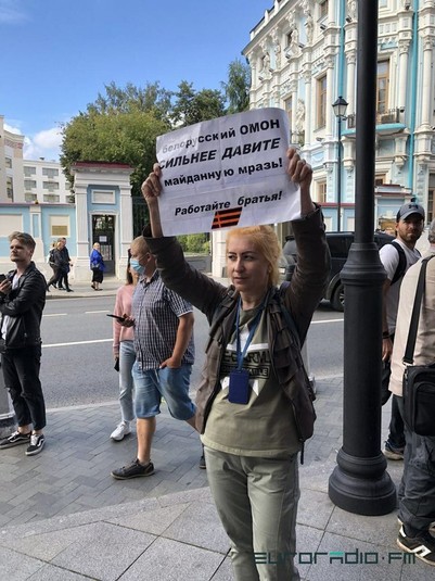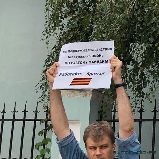 У столиці Російської Федерації Москві, біля посольства Білорусі, у суботу відбулась акція на підтримку білоруських силовиків, які жорстоко поводилися з учасниками протестів.