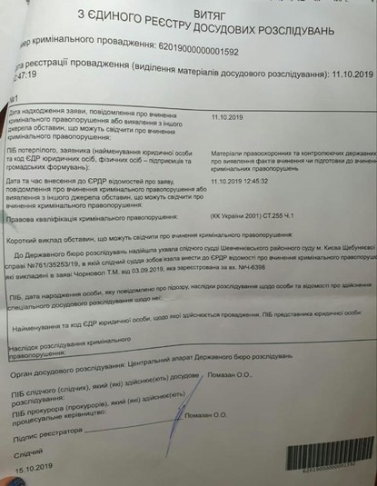 Ці розслідування початі за заявами колишнього народного депутата Тетяни Чорновол. Про це Чорновол повідомила на своїй сторінці в соціальній мережі Фейсбук, опублікувавши відповідні офіційні повідомлення, що надійшли від цього відомства.