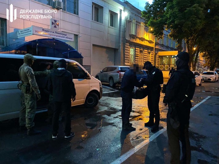 Слідчі територіального управління Державного бюро розслідувань, розташованого у місті Києві, спільно з працівниками Головного оперативного управління ДБР та працівниками СБУ за процесуального керівництва прокуратури Київської області затримали начальника та заступника Павлоградського відділу поліції ГУ Нацполції в Дніпропетровській області, начальника сектору цього ж відділу поліції та чотирьох оперативних працівників.