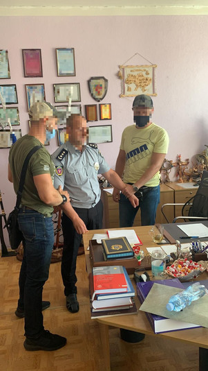 Назва вишу не повідомляється, проте на фото, оприлюдненому на сайті Офісу генпрокурора, видно, що на затриманому – форма з нашивкою емблеми Харківського національного університету внутрішніх справ.