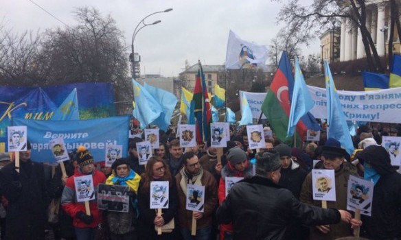 Учасники акції з державними прапорами України і національними прапорами кримськотатарського народу, а також портретами утримуваних в РФ політичних в'язнів, пройшли маршем за маршрутом вул. Інститутська - Грушевського - Європейська площа, звідки повернулися на Майдан Незалежності, де провели мітинг.
