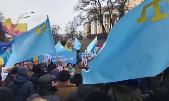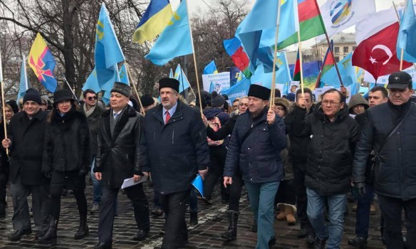 У центрі Києва відбувся марш і мітинг кримських татар, низки українських громадських організацій і просто, приурочений до «Дня опору Криму російській окупації», а також в підтримку проживають на тимчасово окупованій території РФ Криму, передає «Інтерфакс-Україна».