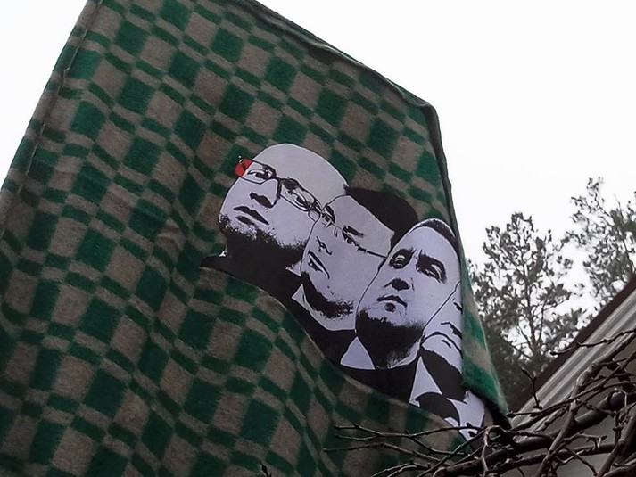 Активісти встановили під будинком генпрокурора Луценка «клановий прапор корупціонерів» – картату ковдру на флагштоці