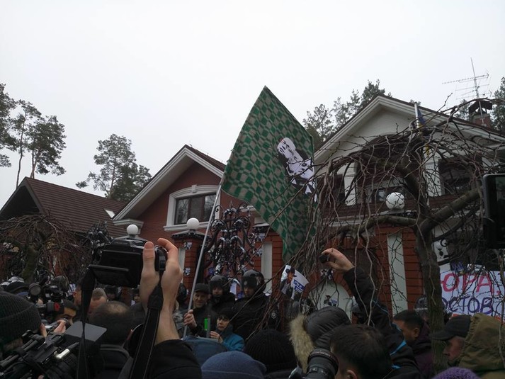 Як повідомляє «Радіо Свобода», активісти встановили під будинком Луценка «клановий прапор корупціонерів» – картату ковдру на флагштоці.