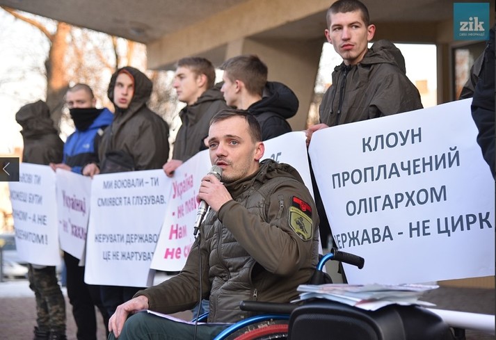 У Львові учасники бойових дій пікетували проти участі Володимира Зеленського у президентських виборах