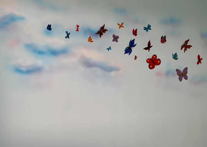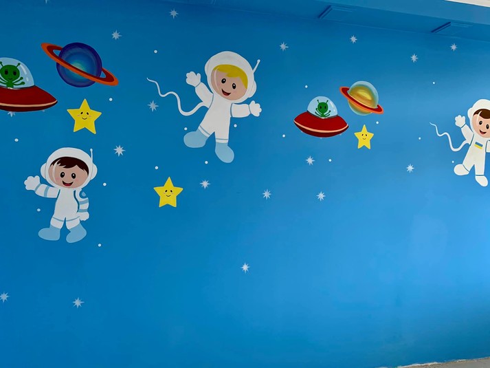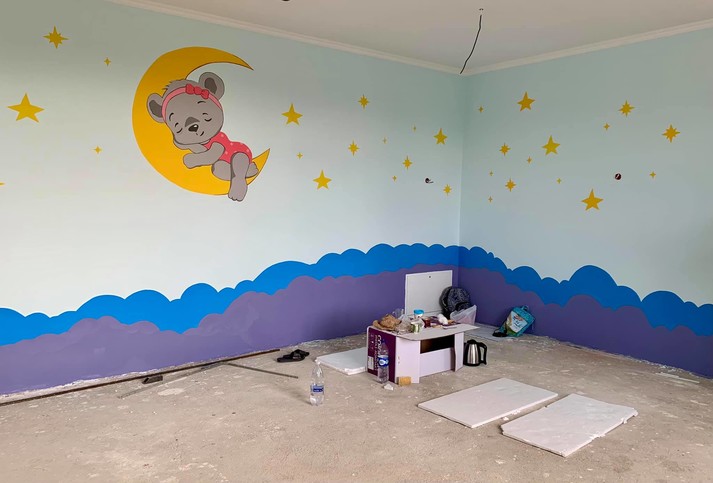 «Усі ескізи ми придумуємо та відтворюємо власноруч. Ці малюнки є частиною сучасного дизайну цього дитсадка, вони створюватимуть радісну та казкову атмосферу для дітей. Розпис однієї кімнати займає добу. Найбільшою за обсягом робіт є їдальня, тут ми працювали два дні», – розповів художник Юрій Телегуз.