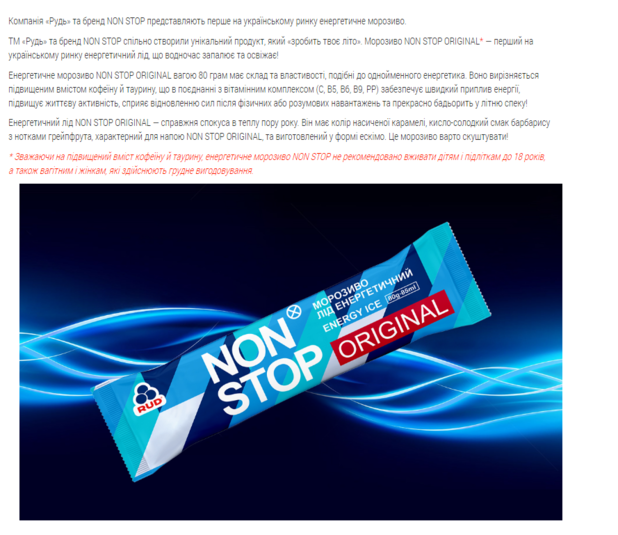 Зазначимо, що реклама нового енергетичного морозива міститься на сторінці компанії «Рудь» у Facebook.