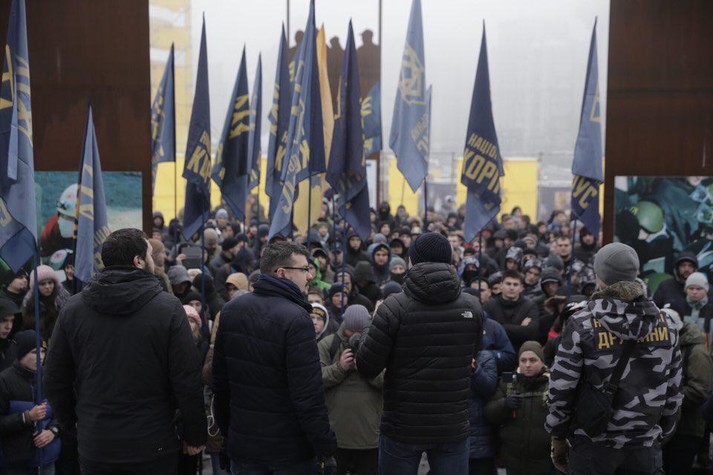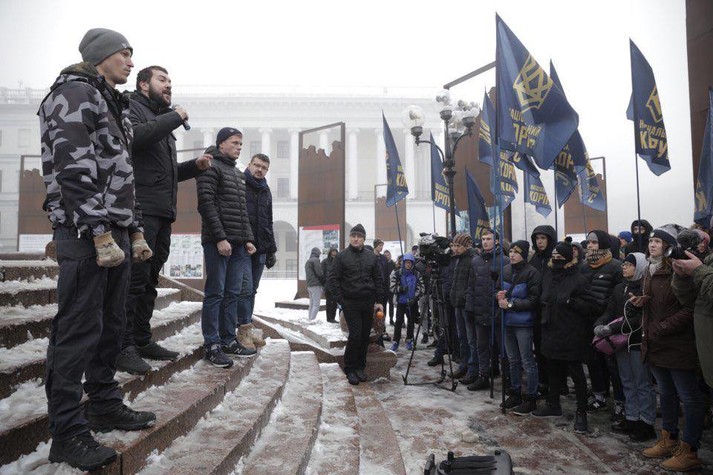 До Адміністрації президента прийшли сотні представників «Національного корпусу» та «Національних дружин».