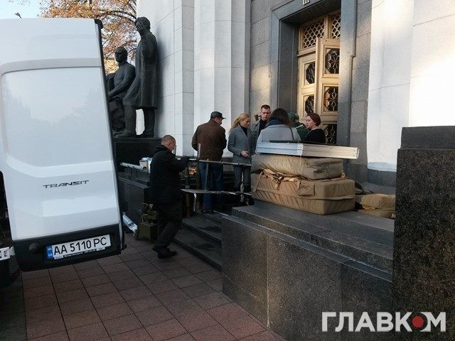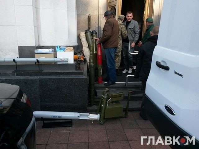 За годину до початку засідання Верховної Ради 18 жовтня до службового входу парламенту підвезли та почали заносити боєприпаси.