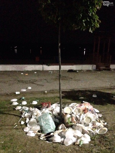 Відпочиваючі залишили після себе гори сміття, одноразових тарілок і стаканчиків. Фотографії були зроблені одругій годині ночі.