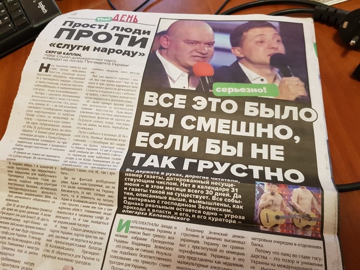 Газета розписує, як непривабливо виглядатиме життя при Зеленському. Ось одна з цитат зі статті «Все це було б смішно, якби не було так сумно»: «…Зеленський ніякий не «слуга народу», а слуга одного пана. Він перебуває в у служінні і повній залежності від одіозного олігарха Ігоря Коломойського, який розікрав мільярди активів «Приватбанку». Саме Коломойський фінансував «Квартал 95» і кампанію ЗЕ. Борги доведеться віддавати, а Коломойський завжди стягує їх з гігантськими відсотками».
