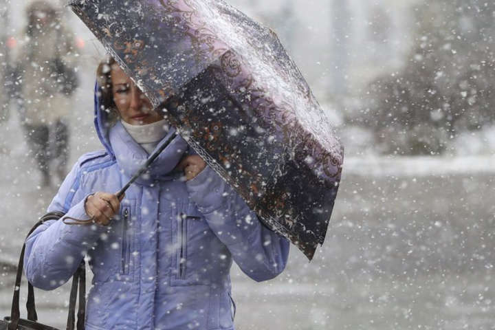 У Києві сьогодні пориви вітру 17-22 м/с, вдень помірний дощ та мокрий сніг, температура вдень 3-5°