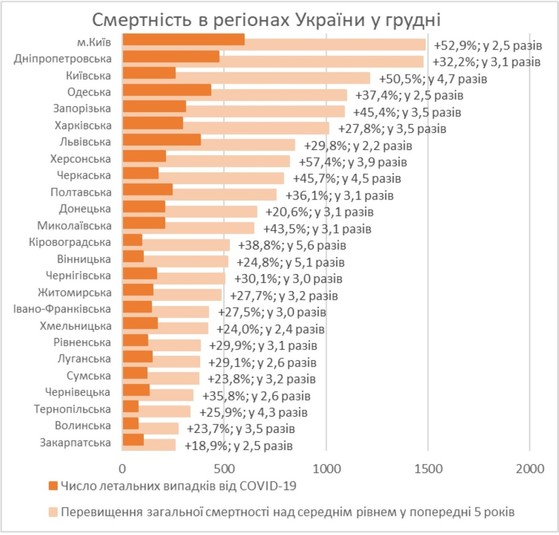 Зазначається, що середня госпітальна летальність за весь період спостережень склала майже 17% – з майже 154 тисяч госпіталізованих померли понад 26 тисяч людей.