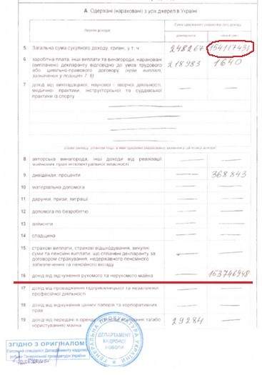 Відтак незрозуміло відчуження якого нерухомого майна принесло дружині працівника Генпрокуратури 153,75 млн грн доходу.