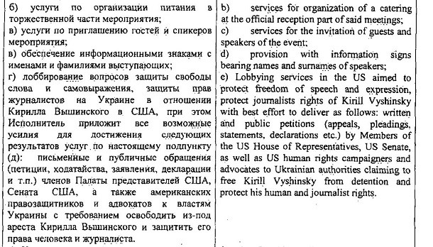 Крім того, виконавець мав докласти максимум зусиль для того, щоб члени Палати представників США, Сенату США, американські правозахисники та адвокати писали петиції і публічно закликали українську владу звільнити Кирила Вишинського з-під варти.