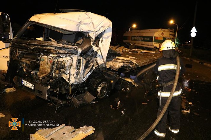 В ДТП на Дніпропетровщині постраждали чотири вантажівки, одна людина загинула (фото, відео)