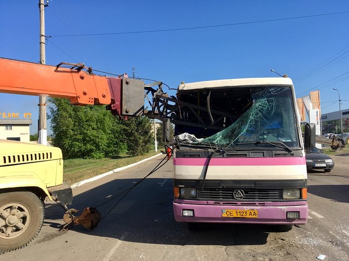 ДТП у Чернівцях: у маршрутку врізалася стріла автокрана (фото)