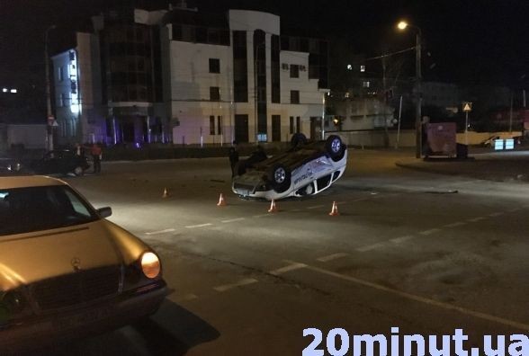 У Тернополі на перехресті вул. Шептицького і Живова сталася ДТП. В результаті зіткнення з іншим автомобілем перекинувся поліцейський позашляховик. Про це повідомляє місцеве видання «20 хвилин».