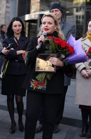 «Пару років тому мені запропонували тут мати зірочку, але я відмовилась…, бо мала вагомі причини… Тоді у мене й половини не було ще таких «планок», – скромно зазначає актриса, маючи на увазі свої знакові роботи у театрі та кіно», – зазначила актриса.