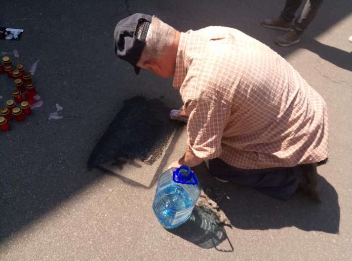 Двірники ацетоном витирають зроблені на асфальті надписи «Хто вбив Павла?»