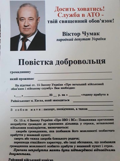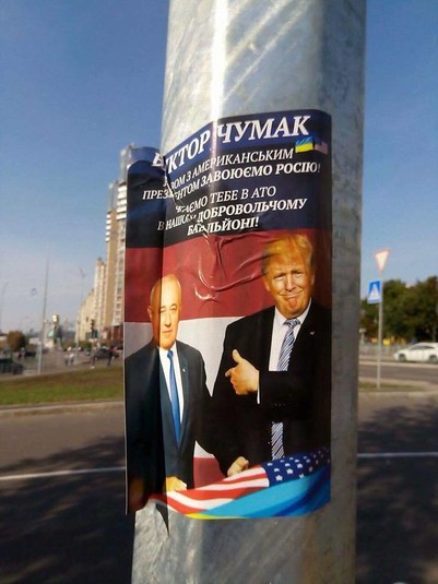 Як відомо, у Києві на Русанівці і Березняках у межах 214 виборчого округу невідомі також поширили кілька провокативних листівок від імені народного депутата Віктора Чумака, згідно з якими він начебто із Трампом збирається завоювати Росію. Також по району були розвішані «повістки добровольцям» від імені Чумака.