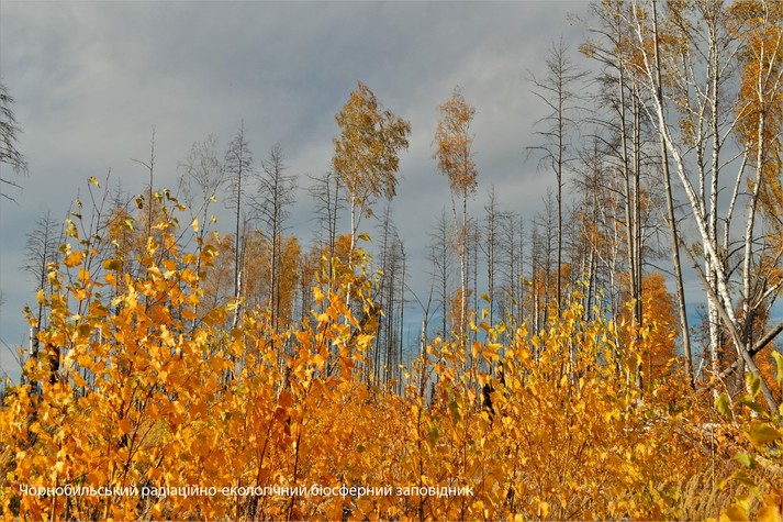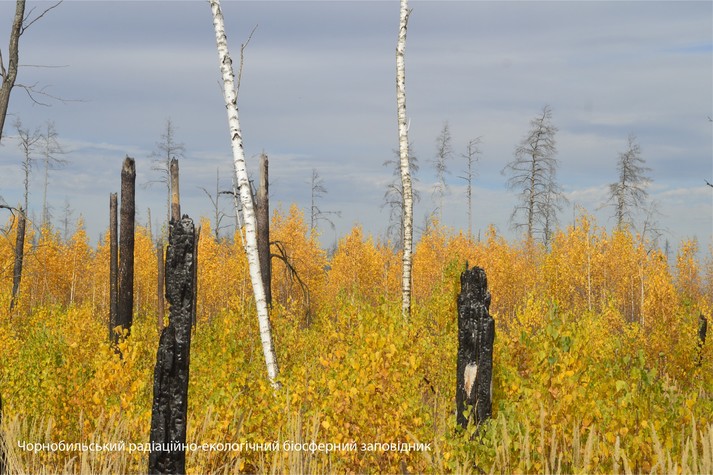 «Де були соснові ліси, формуються похідні березняки. Це класична післяпожежна зміна – сукцесія рослинності, зміна порід. Осіння погода в останні роки – переважно бездощова, і листя має яскраво-жовте забарвлення», – прокоментували екологи.