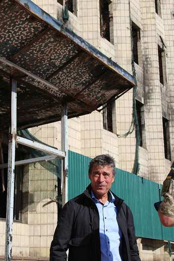Расмуссен відвідав розташування українських військ у районі проведення АТО та пошкоджені обстрілами російсько-окупаційних військ населені пункти Донбасу