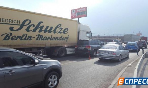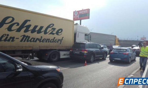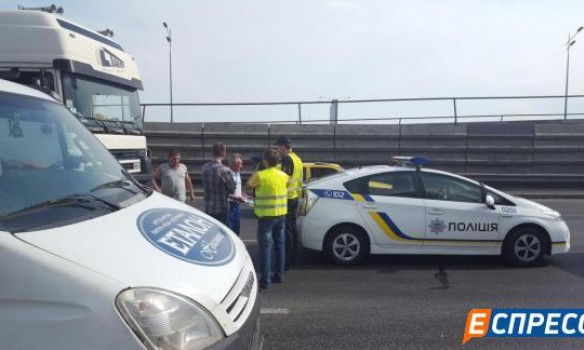 Фура рухалась в третій смузі по Південному мосту, а авто Омельченко - по другій. Дві машини одночасно вирішили перебудуватися і зіткнулися.