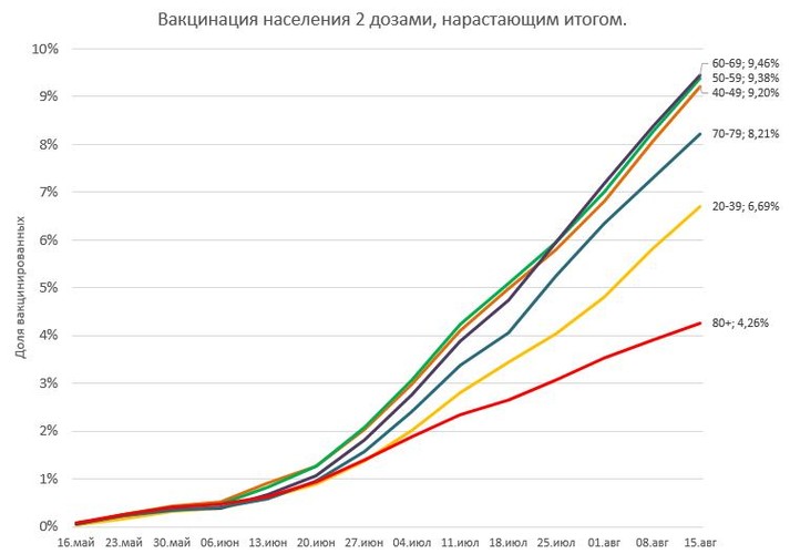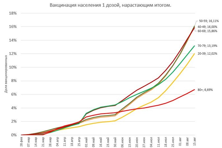 «Для цих вікових груп найвищі ризики госпіталізацій і смертей, а це означає що можливе повторення ситуації, яка була у березні (пік смертності під час третьої хвилі коронавірусу – «Главком»). Всі нормальні країни літніх людей вакцинували в першу чергу, але тільки не в Україні. І ось тут доречно згадати про Ізраїль. Рівень госпіталізацій нещеплених людей старше 60 років вже досяг піку який був там в січні», – написав Істребін.