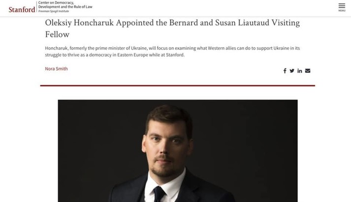 «Кілька років тому в Stanford University була заснована спеціальна програма для лідерів держав, першим запрошеним учасником якої був президент Естонії Toomas Hendrik Ilves. Другим – ключовий радник президента США з національної безпеки та один з найавторитетніших американських генералів Герберт Реймонд МакМастер. Цього року ця велика честь випала мені», – зазначив Гончарук.