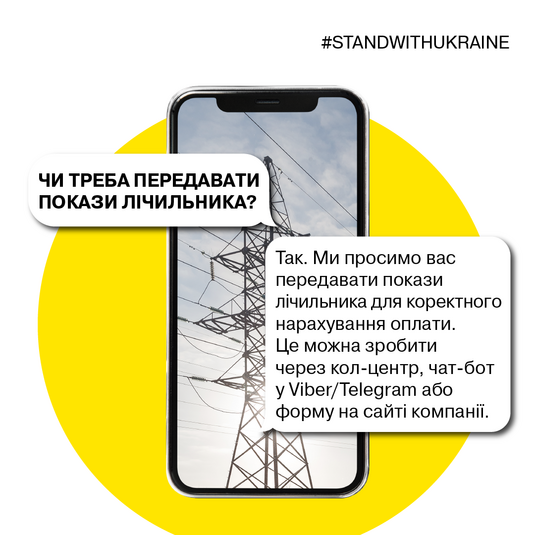 Багато питань наразі в українців виникає стосовно лічильників електроенергії. Зокрема, чи потрібно передавати покази. Працівники компанії просять передавати покази лічильника для коректного нарахування оплати. Це можна зробити телефонами кол-центру, за допомогою чат-боту у Viber або Telegram, сайту або особистого кабінету.